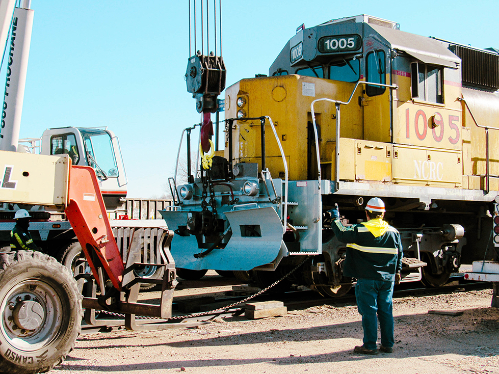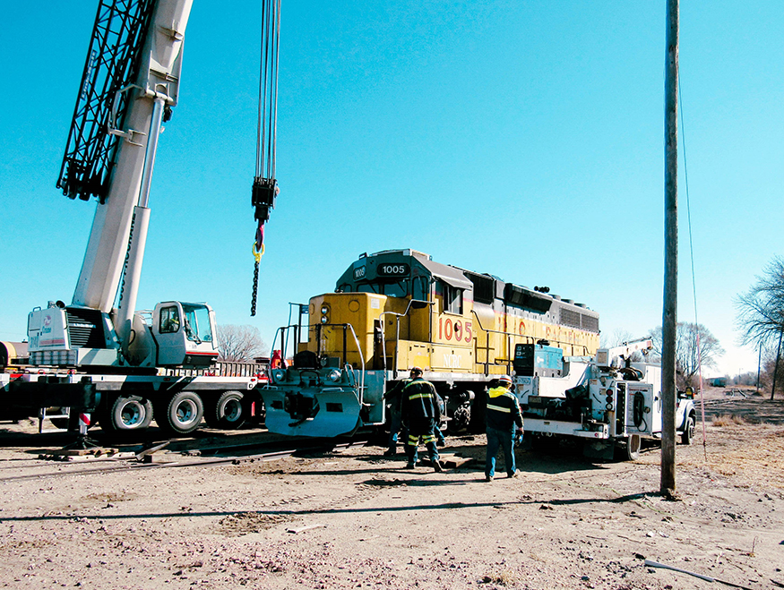 Pro Crane recently assisted the Nebraska Central Railroad to replace a wheel on a locomotive in Norfolk, NE. Pro Crane efficiently and safely lifted the locomotive while the NE Central Railroad crew pulled out the old damaged wheel and replaced it with a new one.